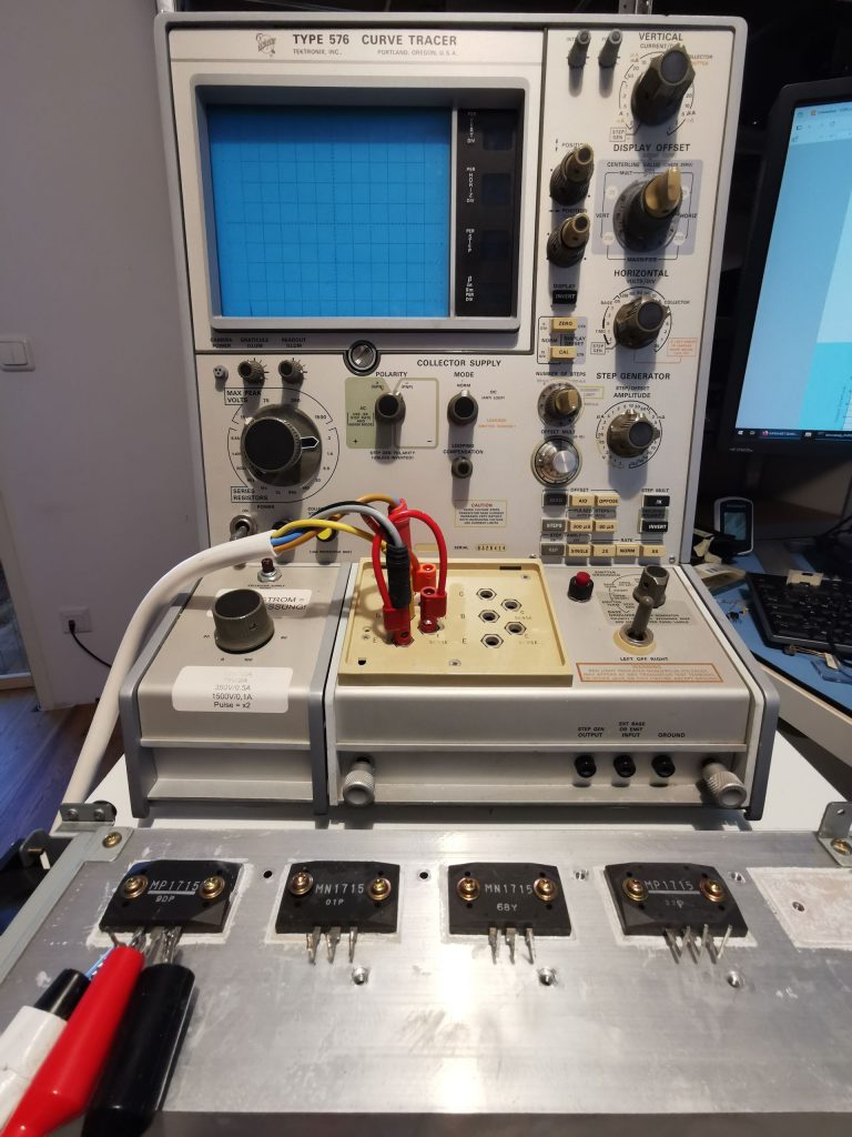 Dazu werden die Teile am Tektronix 576 unter Last gemessen und dabei auch noch die Gleichstromverstärkung ermittelt. Als Referenz dienen noch intakte Transistoren eines anderen Kanals.
