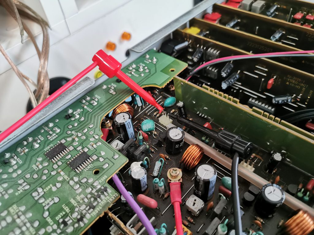Somit wird einfach mal an allen Ausgängen der Endstufe gemessen, und siehe da… an einem der Ausgänge liegen über 63V an – das ist dann doch etwas zu viel für einen Lautsprecher!