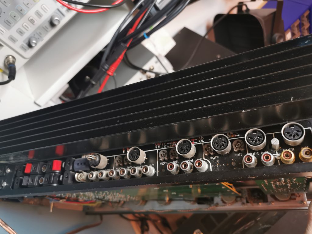 Bekannt ist das Gerät auch für die ausgerissenen Chinchbuchsen. Diese haben neben den Lötstellen nämlich absolut keine Montage – es ist also nur eine Frage der Zeit bis man die Buchsen beim ausstecken von der Platine abzieht. Die Buchsen waren leider eine Sonderanfertigung – Ersatz ist nicht mehr zu bekommen.